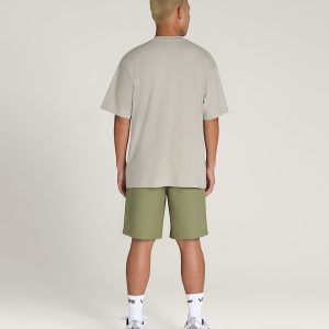 Classic chino styling with soft fabricationFront hand pockets with coin pocket at the rightEmbroidered Drop V bartack below front pocketRear welt pockets with button closure“V” back belt loop detailCheckerboard twill taping on the internal fly facingRelaxed fit for easy movement and a laid-back feelOutseam: 20"64% cotton, 34% polyester, and 2% spandex fabric