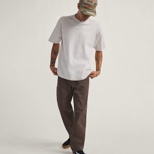 Relaxed fit for easy movement and extra leg roomClassic chino styling with skate-inspired constructionSlant front hand pockets with coin pocket at rightButtoned back welt pockets for secure storageFront fly with button closureInternal flag label shows when cuffedDrop V bartack embroidery reinforces high-stress zones17" leg opening62% polyester, 36% cotton, 2% elastane