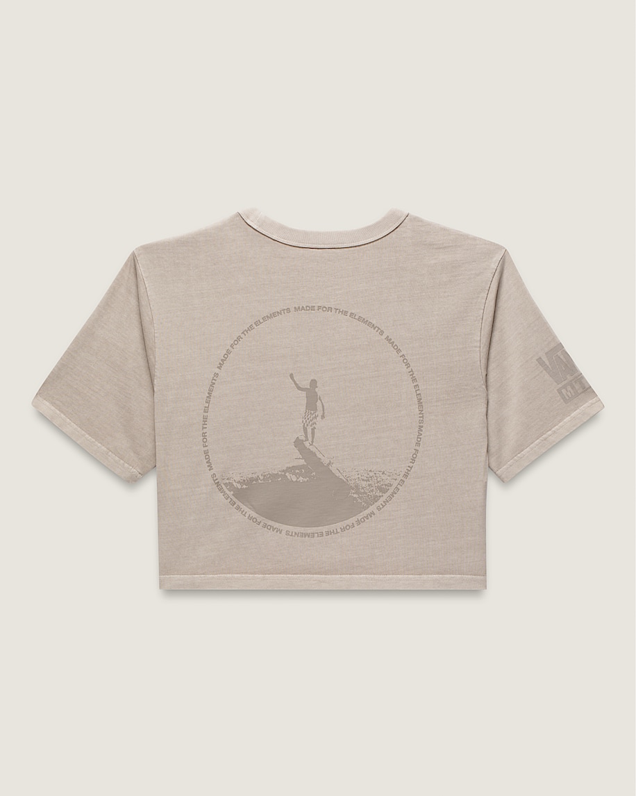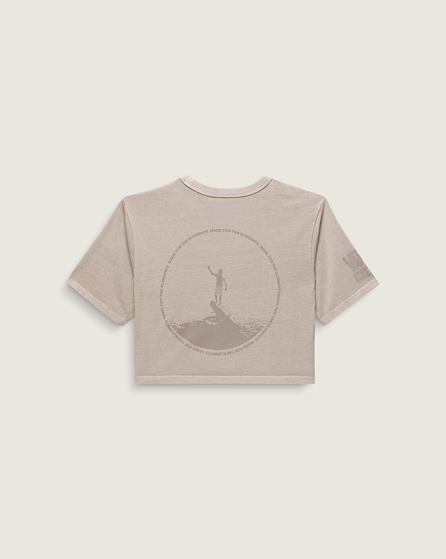 Crewneck shirt for a classic look short sleeves for a casual, everydayOrganic cotton jersey fabricationRibbed neckbandGarment dye wash for a vintage lookScreen printed graphics on the chest and backBoxy, cropped fit100% cotton
