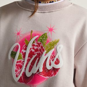 Classic crewneck fit for easy layeringMidweight fleece provides soft, reliable warmthRibbed neck, cuffs, and hem for a secure feelRaspberry screenprint with puff Vans logo56% cotton, 44% polyester, 280 g fleece