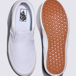 Iconic Slip-On shoeLow profile canvas uppers with classic checkerboard printColor Theory seasonal colorwaySupportive padded collarsElastic side accentsSignature rubber waffle outsoles