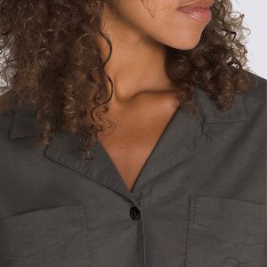 Short sleeve button-up shirtSheer slubby woven fabrication for unique uneven textureEmbroidered Vans® logo on the chest pocketBoxy fit for a relaxed, oversized silhouette100% cotton