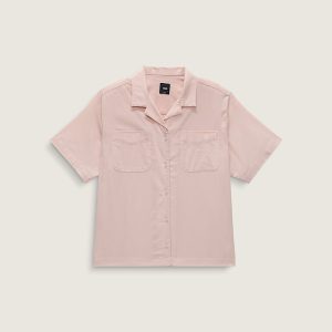Short sleeve button down shirtSheer slubby woven fabrication for unique uneven textureEmbroidered Vans® logo on the chest pocketBoxy fit for a relaxed, oversized silhouette100% cotton