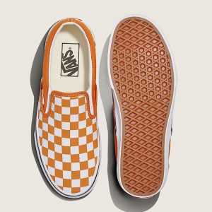 Slip on shoeCanvas upper for a durable and classic lookPadded collar for enhanced support and comfortElastic side panels give a comfortable easy on-and-off fitDurable rubber sidewall with classic foxing stripeReinforced toe bumper for heavy wear and tear.Signature waffle outsole pattern for reliable grip since '66Vulcanized sole for superior board feel and flexibilityCheckerboard branding is unmistakably Vans
