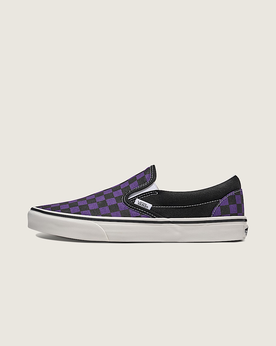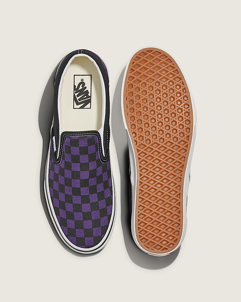 Slip on shoeCanvas upper for a durable and classic lookPadded collar for enhanced support and comfortElastic side panels give a comfortable easy on-and-off fitDurable rubber sidewall with classic foxing stripeReinforced toe bumper for heavy wear and tear.Signature waffle outsole pattern for reliable grip since '66Vulcanized sole for superior board feel and flexibilityCheckerboard branding is unmistakably Vans
