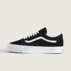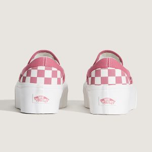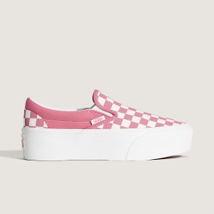 Iconic slip-on shoeUpdated platform sidewallsSturdy canvas uppers with checkerboard printElastic side accentsSupportive padded collarsSignature rubber waffle outsoles