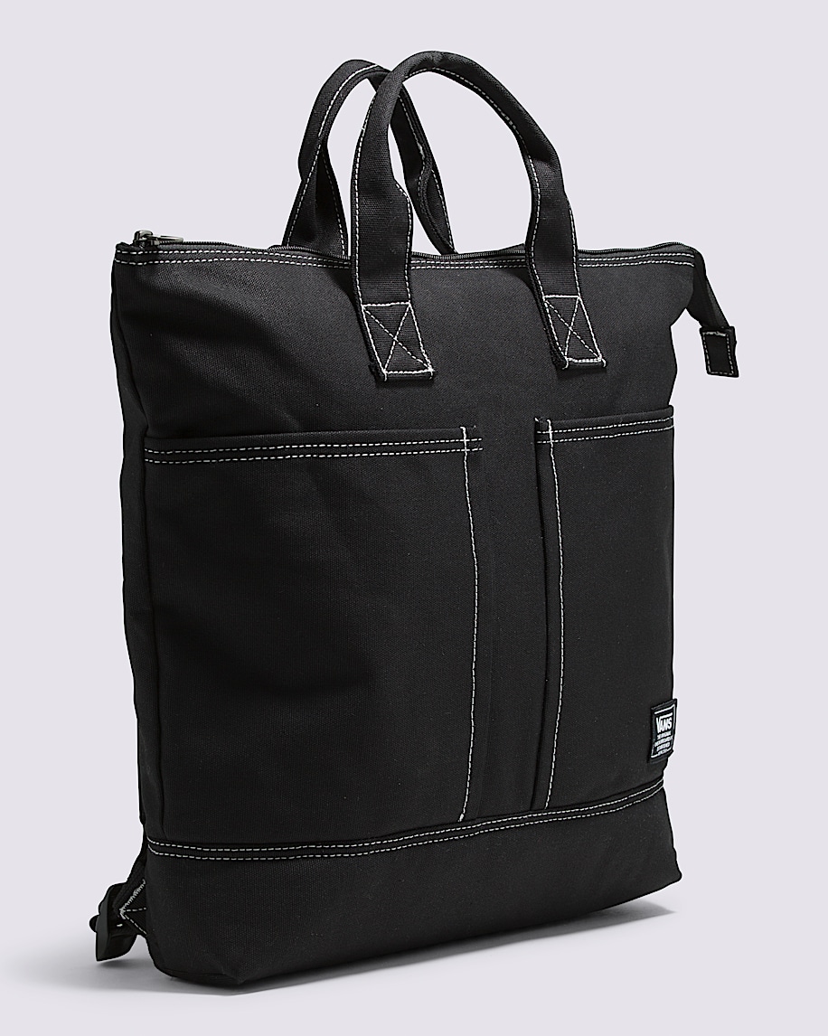 Shell: 100% Cotton fabricLining: 100% Polyester fabricMain compartment with zip closureInterior media sleeveExterior slip-in pocketsHandles at openingCapacity: 14 LitersDimensions: 17'' x 14 1/2'' x 3''