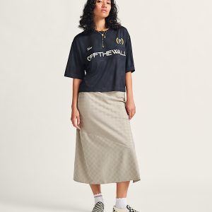 With a flattering bias cut panel and side slit that allows for easy movement, the Diana Column Checkerboard Skirt offers an elevated take on a retro style with a satiny charmeuse fabric featuring a subtle woven check print.