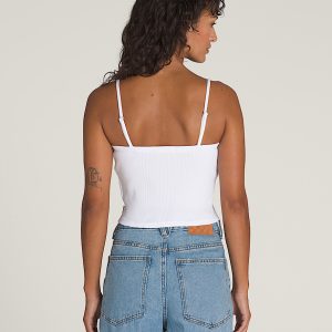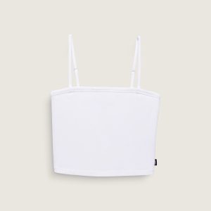 Rib knit tube topRemoveable strapsFlag label at the hem100% cotton