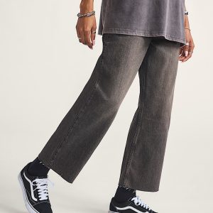 14 oz denim pantsAnkle length with a raw hemAdjustable waist with a high riseWide leg fitChainstitched detailsAcid wash with reactive pigment dye100% cotton