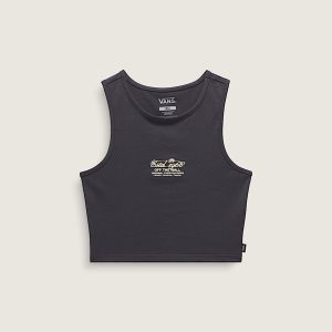 Rock Vans® history in the Everydayness Crop Tank, a heavy cotton jersey fitted crop tank with a hint of stretch. It features a graphic on the front calling out the Vans origin date and its contributions to streetwear.