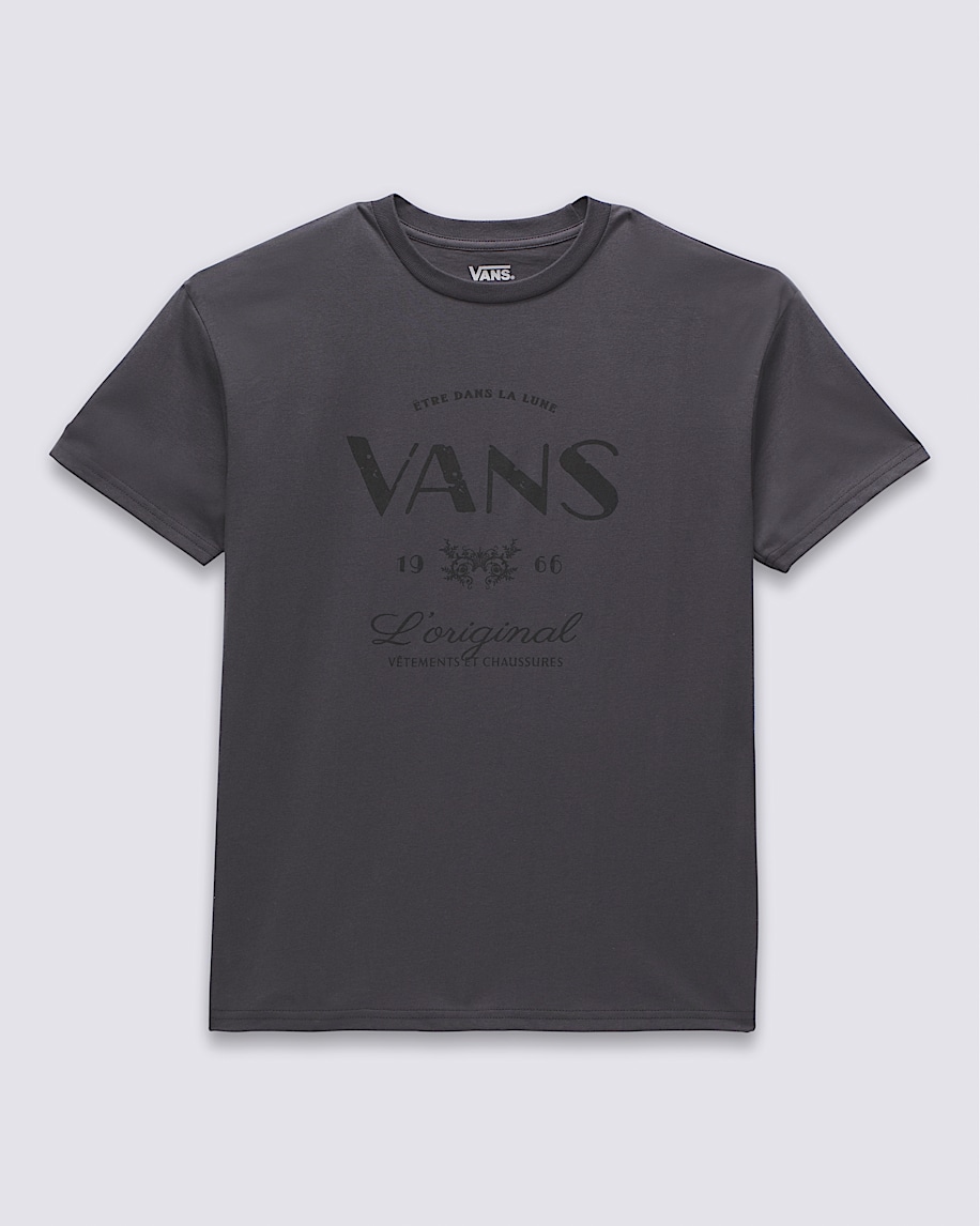 Dive into your mental machinations in the French Lost Thoughts T-Shirt, an oversized heavy cotton jersey short sleeve crew neck T-shirt with a graphic of a Vans® logo crest on the front.