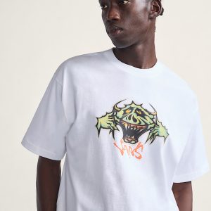 Get ready for spooky season in the Goofy Ghoul T-Shirt, with short sleeves for casual, everyday style. The main attraction is long-lasting and durable screen print artwork of a ghoul pulling a face atop a spray paint-style Vans logo.