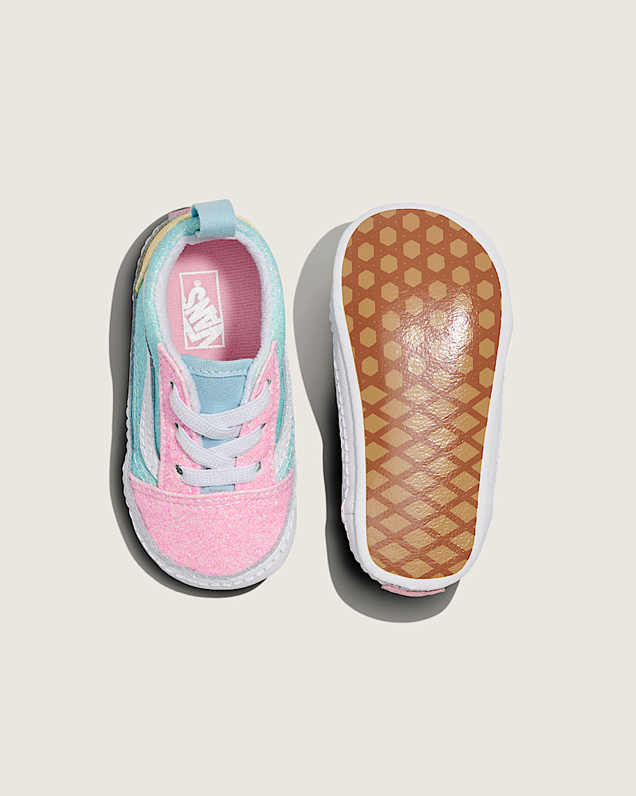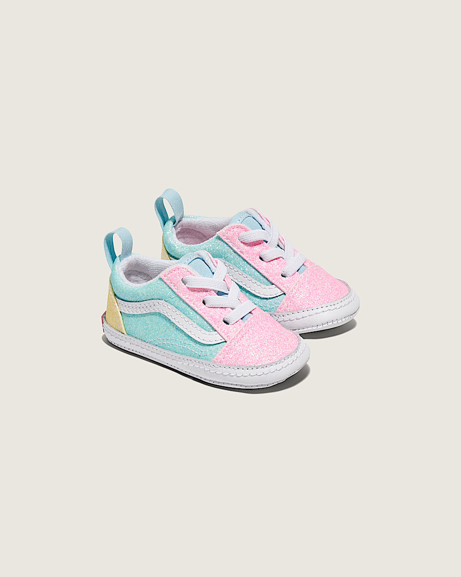 Low-top crib shoe designed for babies and infantsRecommended for ages 0 to 9 monthsCanvas and suede textile uppersElastic lace design mimics slip-ons for quick changesHeel pull assists with slipping the shoes on quicklySoft, flexible soles with printed signature waffle patternIconic Sidestripe™ insignia