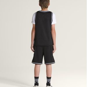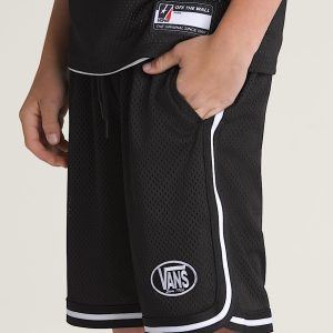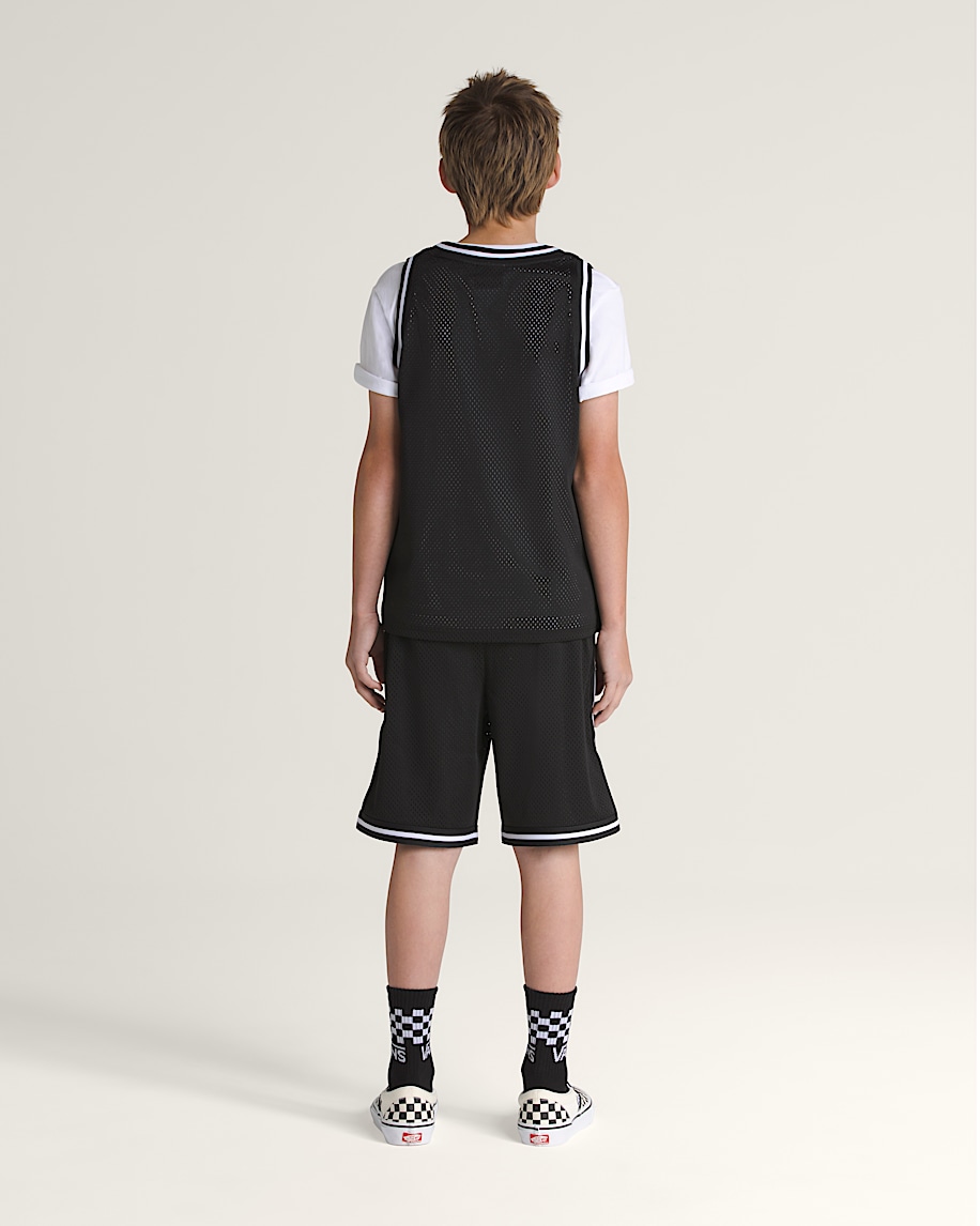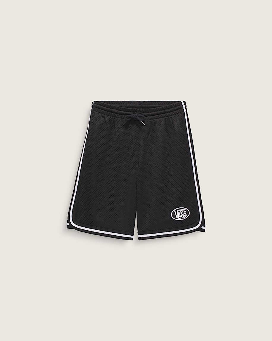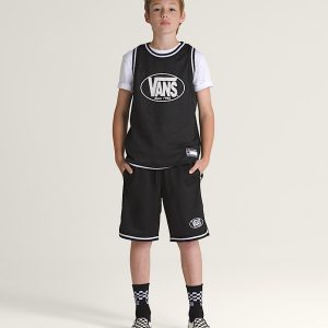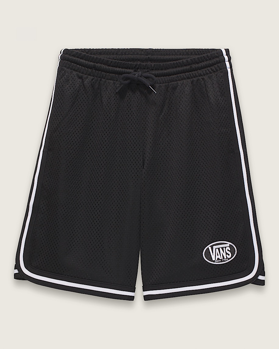 Make a slam dunk in the Kids Classic Oval Loose Basketball Shorts, a roomy pair of shorts made for play with contrasting jacquard striping and a screenprinted graphic of a Vans® logo at the front hem.