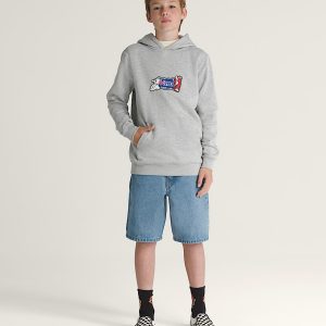 The Kids Fresh Pullover Hoodie is a classic kangaroo pocket pullover made of warm and cozy brushback fleece. It also features ribbed details with a screenprinted graphic of a Vans®-branded toothpaste tube on the front.