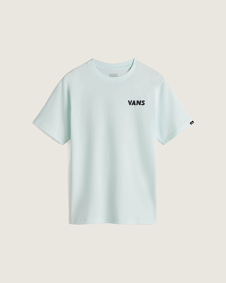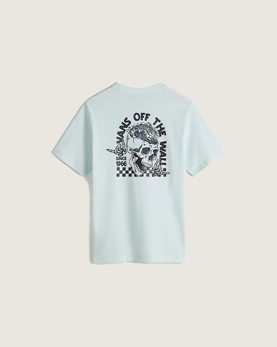 Break out in the Kids Headwaves T-Shirt, a short sleeve crew neck T-shirt. Featuring carded ringspun fabrication for a softer, smoother shirt, it also showcases a graphic of a skull breaking through a checkerboard ring with a Vans® logo beneath.