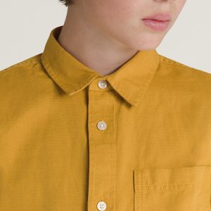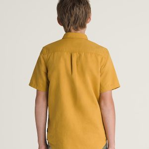 Crafted of a blend of cool, breathable linen and cotton, the Kids Lawson Solid Woven Shirt is a wardrobe staple that looks as at home at the skate park as it is in the classroom. With a simple button front and rounded hemline, it's finished with branded Vans® details that nod to street style.