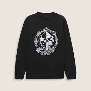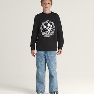 Be a little devious in the Kids Mister Sinister Crew Sweatshirt, a loose fit, long sleeve, crew neck fleece sweatshirt. It features screenprinted graphics of an ominous skull atop the Vans® logo on the front.