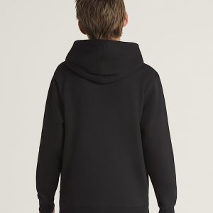 Pullover hoodieBrushback fleece fabrication for extra warmth and cozinessTwo piece hood with tunneled drawcordRibbed cuffs and hemScreenprinted graphic on front56% cotton, 44% polyester