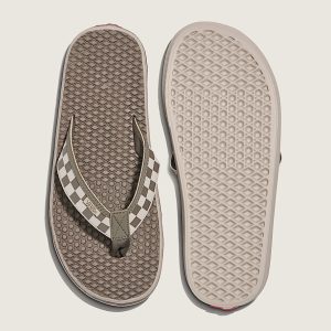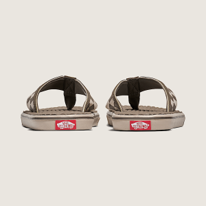 Classic Vans shoe inspired SandalSoft rubber and stretch textile liningsNylon toe pieceSynthetic Nubuck strapsLightweight, flexible, and durable UltraCush™ Lite waffle outsolesSubtle waffle pattern on the footbedCheckerboard branding is unmistakably VansMade with water-based inks and glues