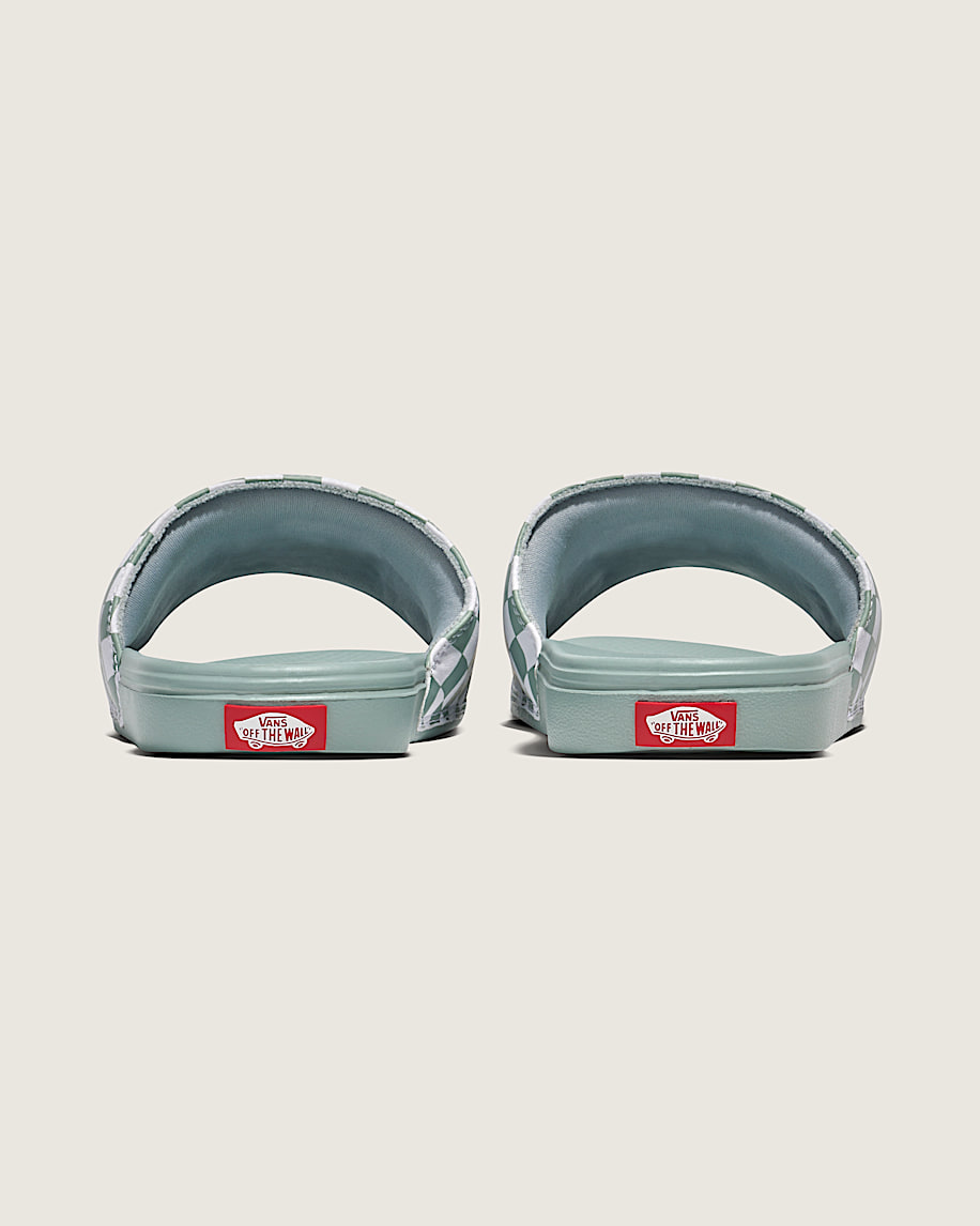 Classic Vans shoe inspired slideSoft rubber and stretch textile liningsSynthetic Nubuck strapsLightweight, flexible, and durable UltraCush™ Lite waffle outsolesSubtle waffle pattern on the footbedCheckerboard branding is unmistakably Vans