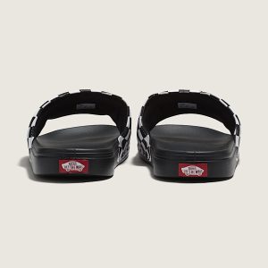 Slide sandal inspired by our vulcanized rootsSynthetic nubuck straps with iconic checkerboard printSoft rubber and stretch textile liningsLightweight, flexible, and durable injected UltraCush Lite waffle outsolesSubtle waffle pattern on the footbed