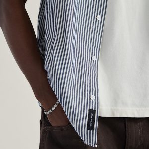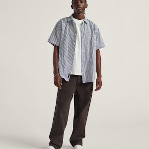 Crafted of a blend of cool, breathable linen and cotton, the Lawson Stripe Button Up Shirt is a wardrobe staple that looks as at home at the skate park as it is in the boardroom. With a simple button down front and rounded hemline, it's finished with branded Vans® details that nod to street style.