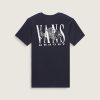 Short sleeve constructionClassic fit for everyday wearLeft chest Vans logo graphicModel wearing size Medium100% cotton