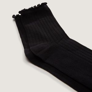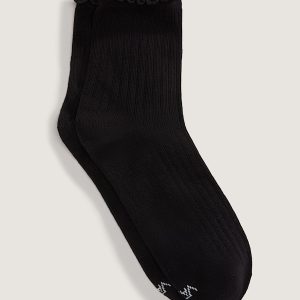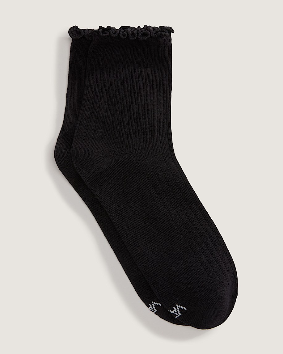 Half crew height for versatile coverageLettuce-edge cuff adds a soft, ruffled finishThin knit construction with metallic yarnJacquard Vans logoSold as a single pair50% cotton, 40% polyester, 8% metallic, 2% elastane