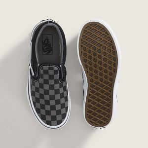The first thing that jumps out is the color. Well, the lack of color, to be exact. Who knew that black and pewter could make for such an eye-popping combination? This Kids Classic Slip-On Checkerboard takes the rules of coordination and throws caution to the wind. Vans is all about that Off the Wall attitude, and this checkerboard Slip-On is the dictionary definition of that approach. The low-profile canvas uppers, supportive padded collars, and elastic side accents ensure a comfortable fit that does justice to the effortlessly sophisticated black and pewter checkered finish.