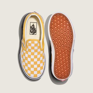 Slip on shoeCanvas upper for a durable and classic lookPadded collar for enhanced support and comfortElastic side panels give a comfortable easy on-and-off fitDurable rubber sidewall with classic foxing stripeReinforced toe bumper for heavy wear and tear.Signature waffle outsole pattern for reliable grip since '66Vulcanized sole for superior board feel and flexibilityCheckerboard branding is unmistakably Vans
