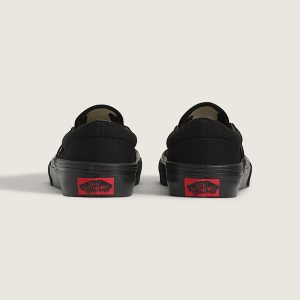 All black everything. Vans #98 has been an integral part of the Vans line-up since its release in 1979, but these all-black Slip-On sneakers raise the style stakes to another level while keeping the focus on comfort and accessibility. The low-profile canvas uppers and supportive paddle collars make sure of that. The Kids Classic Slip-On has come a long way since it first erupted on the scene, but the mix of comfort and style remains timeless.