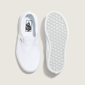 Iconic Slip-On shoe made for kidsLow profile canvas uppersSupportive padded collarsElastic side accentsSignature rubber waffle outsoles