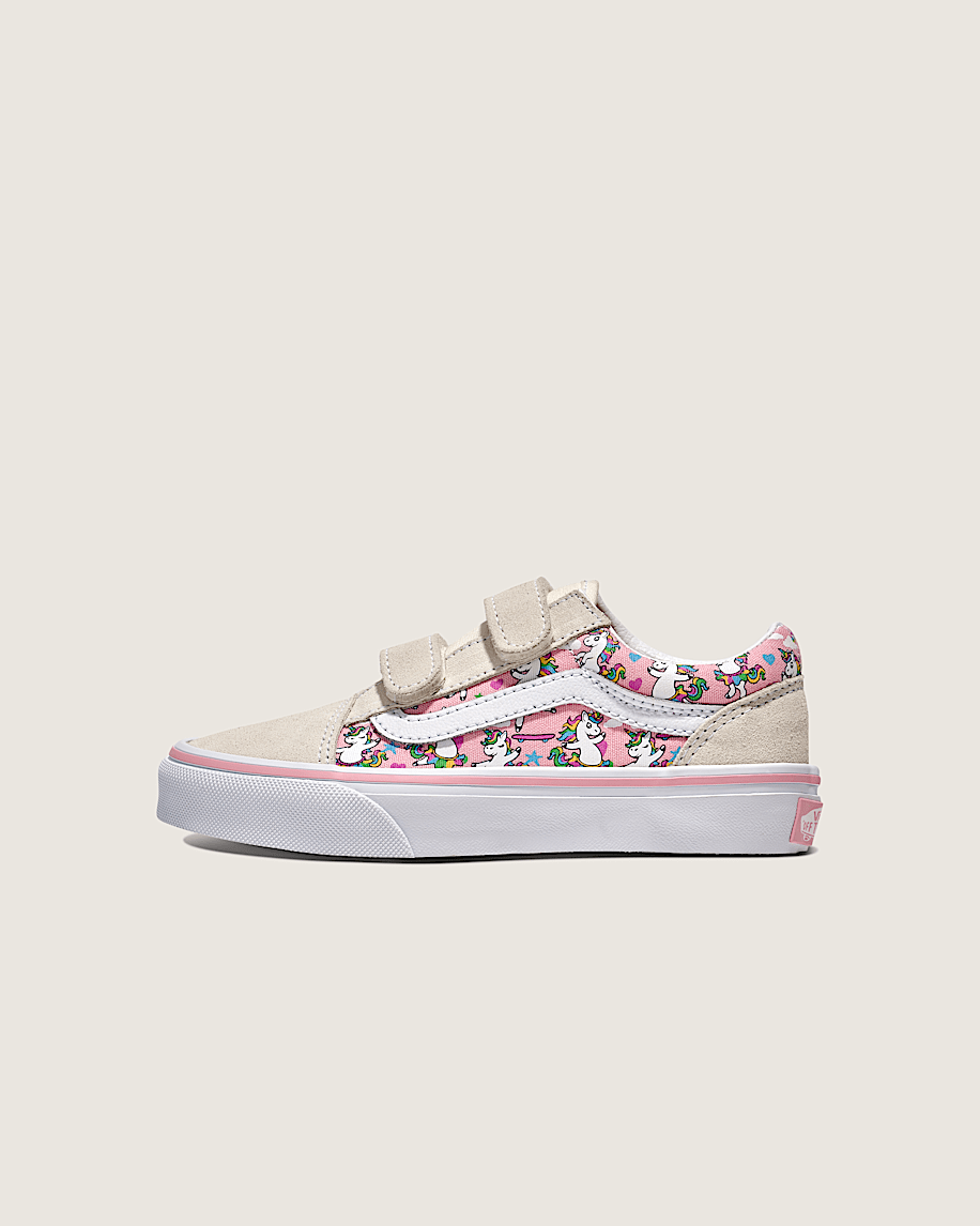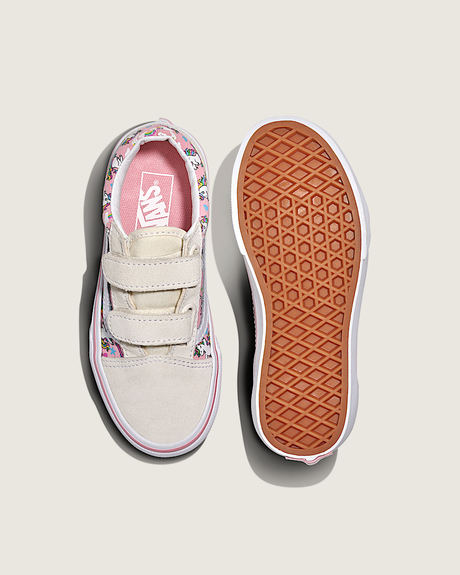 Little kids low-top shoeRecommended for ages 4 – 8 yearsSturdy suede and canvas uppersPadded collar for enhanced support and comfortDouble hook-and-loop closures for easy on-and-offDurable rubber sidewall with classic foxing stripeReinforced toe bumper for heavy wear and tear.Signature waffle outsole pattern for reliable grip since '66Vulcanized sole for superior board feel and flexibilityIconic Sidestripe™ insigniaUnicorn artwork