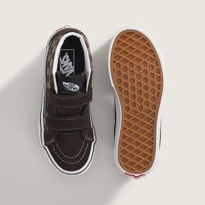 Inspired by the legendary Vans mid-top, the Kids' Sk8-Mid V brings the best of both worlds together with a familiar Sk8-Hi aesthetic, classic mid-top silhouette, and hook-and-loop closures that provide a secure fit without the fuss. Just strap em' on, and go make the day your own.