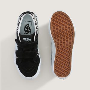 Inspired by the legendary Vans mid-top, the Kids' Sk8-Mid V brings the best of both worlds together with a familiar Sk8-Hi aesthetic, classic mid-top silhouette, and velcro closures that provide a secure fit without the fuss. Strap em' on and make the day your own.