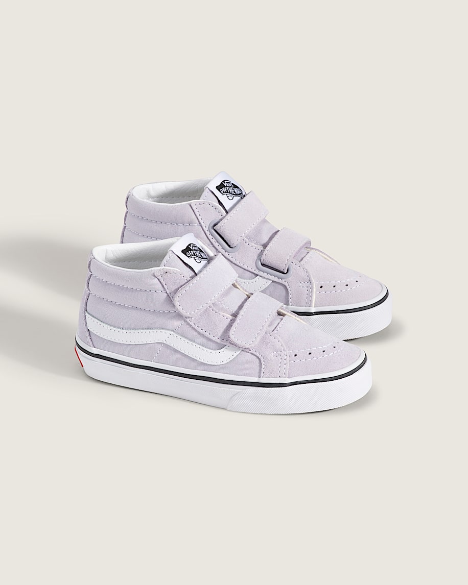 Legendary Sk8-Hi aesthetic in a mid-top shoeLeather upper for a smooth, durable finishSupportive padded collarsIconic Sidestripe™ insigniaSignature waffle outsole pattern for reliable grip since '66Vulcanized build for the original look and feelDouble hook-and-loop closures for easy on and off