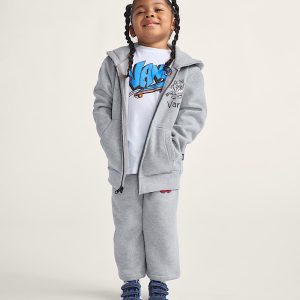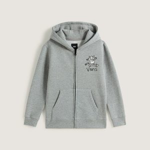 With a full-length front zipper for adaptability, the Little Kids Sk8 Posse Zip Hoodie has a kanga front pocket that's perfect for keeping little hands warm–or stashing stuff. The addition of long-lasting screen print artwork gives a cartoon take on classic Vans details