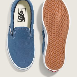 Iconic Slip-On shoe made for kidsLow profile canvas uppersSupportive padded collarsElastic side accentsSignature rubber waffle outsoles