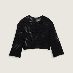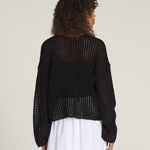 Mila Open Knit Crop Crew Sweater