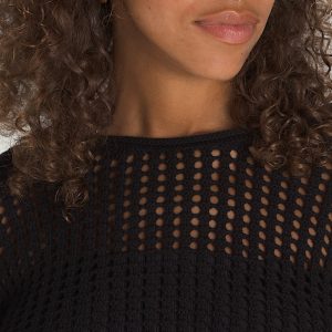 Open knit cropped pullover sweater80% cotton, 20% acrylic