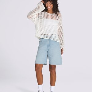 Made of a cotton and acrylic blend to last through the seasons while keeping you warm, the Mila Open Knit Crop Crew Sweater features a looser weave for a breathable, peek-a-boo knit.