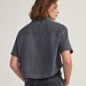Short sleeve button-down with a boxy fit10 oz. woven denim for a structured feelWorkwear chest pocket for utility stylingPearlized snap buttons for subtle detail100% cotton