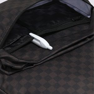 Allover Checkerboard printFront pocket with internal organizerInterior sleeve fits most 15" laptops (laptop not included)Ergonomic, padded shoulder strapsCapacity: 22 litersDimensions: 16.6" x 12.8" x 4.8"Shell: 100% recycled polyesterLining: 100% recycled polyester