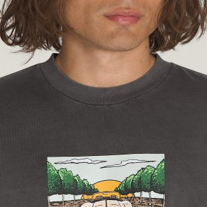 Hit the road in the Orchard Lane T-Shirt, a loose fit short sleeve crew neck T-shirt in an overdye wash for super saturated color. It's finished with a screenprinted graphic of a classic car on a Sunday drive through an orchard.
