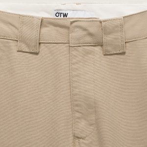 Mid-rise fit with wide, straight legDurable cotton canvas with structured feelClassic 5-pocket designUtility loop detail at sideArticulated seams for shapeEmbroidered OTW X ‘Hg’ logoMetal hook & bar with zip fly12 oz 100% cotton canvasHigh rise, relaxed FitInseam: 29”