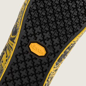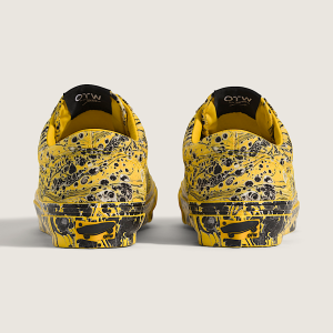 The Old Skool becomes new with Sterling Ruby's vibrant take on the iconic silhouette. Midweight canvas with a cyber yellow splatter design extended down to the foxing makes you look twice, and matching branded laces showcase S.R. Studio LA. CA. branding from top to bottom. A first-of-its-kind Vans custom Vibram outsole with all-new tank tread brings superior grip and traction for all surfaces without excess weight to this collaborative classic.
