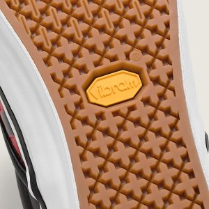 Iconic slip-on originally known as Style 98Full-grain leather upper with an embossed checkerboard patternPadded collar and leather lining for added comfortElastic side panels for easy slip-on and offHigher sidewall with gloss finishFoxing tape inspired by original 90's Osnaburg reinforced outsolesUpgraded footbed and refined construction combine for a more seamless fitSola Foam ADC (All-Day Comfort) insole for soft and durable cushioning, it is made using at least 30% biobased PU foam partially derived from plants and it is USDA Certified BiobasedVibram Waffle Vulc outsoleOTW white logo heel scab