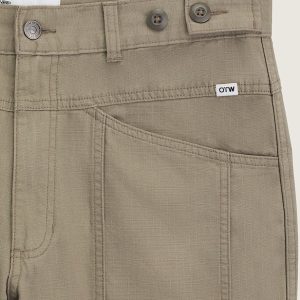 Button-tab waist adjusters for a dialed-in fitD-ring at right pocket adds utilityDurable ripstop fabricationBack patch pockets for storageSelf-fabric paneling adds structure and textureOTW branded shank button and zip fly for clean closureLoose fit for unrestricted movementTapered leg for a modern, easy-wearing shapeDense, sturdy hand feel that holds its shapeOTW label at left pocket for a hit of heritage100% cotton